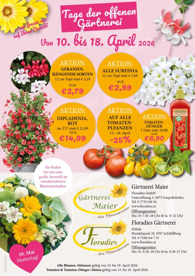 Ab sofort im Floradies, in der Gärtnerei Maier und bei vielen Oberösterreichischen Gärtneren:
